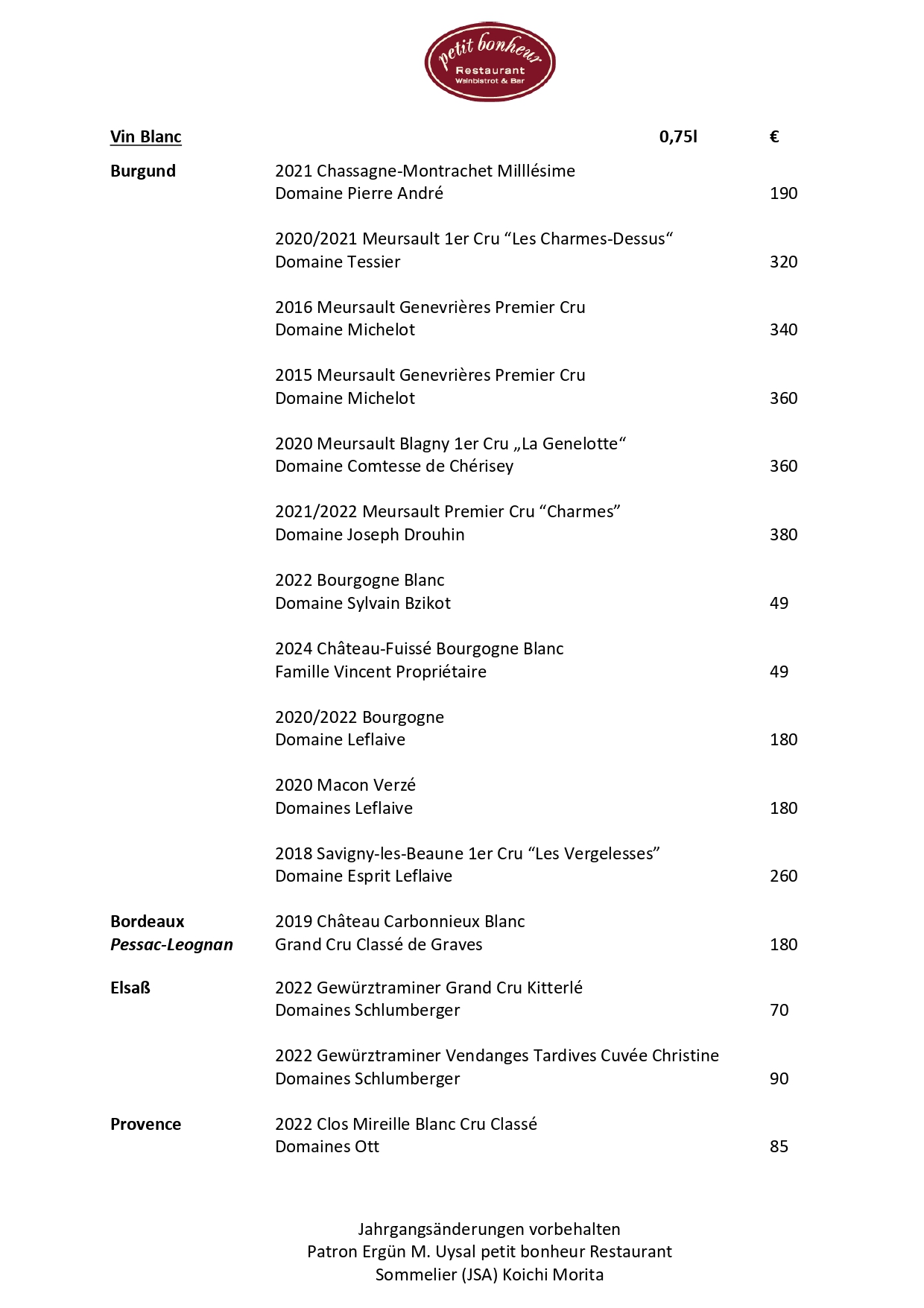 Weinkarte